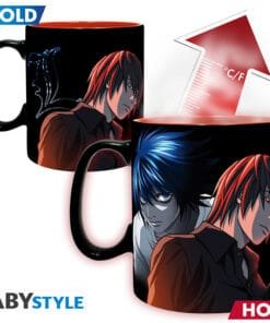 Préférez-vous Kira qui a le Dieu de la Mort à ses côtés, ou bien L qui n’a que son cerveau et la technologie pour élucider les mystères les plus fous ? Pour les indécis, ABYstyle a créé ce superbe mug thermo-réactif Death Note qui représente les 2 camps !
