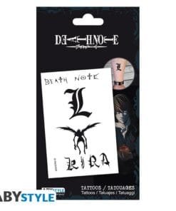 Vous aimez Death Note ? L, Kira, Ryuk, montrez vos préférences directement sur vous grâce à ce merveilleux set de tatouages Death Note par ABYstyle !