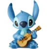 Présenté dans une vitrine en acrylique dur, Stitch profite du soleil sur un fond de plage coloréqui évoque les paysages tropicaux d’Hawaï.