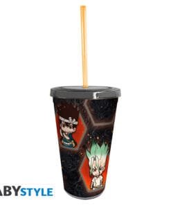 Buvez à la santé de Senku et du royaume de la science avec ce gobelet avec paille Dr Stone par ABYstyle.
