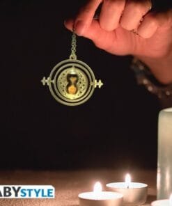 Qui n’a jamais rêvé de pouvoir retourner dans le temps pour rectifier ses erreurs avant qu’elles ne se produisent ? Votre réplique du Retourneur de temps en métal doré est en tout point similaire à celui qu’Hermione utilise dans « Harry Potter et le prisonnier d’Azkaban » : vous pourrez le faire tourner sur ses 2 axes de rotations et observer le sable s’écouler dans son sablier. Votre porte-clés Retourneur de temps par ABYstyle n’attend plus que vous !