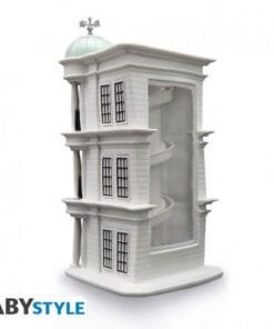 Gardez vos deniers dans la plus sûre et célèbre banque des sorciers, Gringotts ! Insérez des gallions, des mornilles et des noises dans cette tirelire Harry Potter par ABYstyle et vous verrez, les pièces vont tourbillonner jusqu’à atteindre les galeries souterraines de la banque mais gare aux gobelins, ils seront toujours là pour surveiller !
