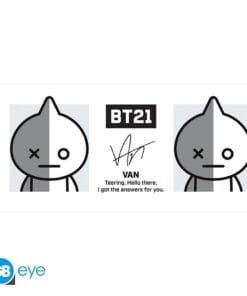 Démarrer la journée avec VAN ! Ce mug est un hommage vibrant au personnage robotique emblématique de l’univers BT21, créé par le leader de BTS, RM. Avec son design bicolore noir et blanc caractéristique, le mug met en scène VAN, le protecteur de BT21, accompagné de sa signature et de la phrase « Teering. Hello there, I got the answers for you. » C’est le compagnon idéal pour tous les fans qui veulent une touche de K-Pop et de mignonnerie technologique dans leur quotidien.