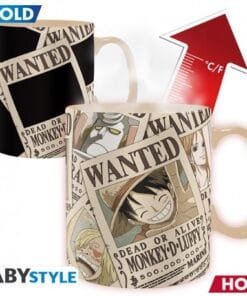 - Un mug thermoréactif (460 ml) : Versez une boisson chaude et regardez apparaître tous les avis de recherche de l’équipage ! Un clin d’œil parfait à la prime croissante des pirates les plus redoutés de Grand Line.