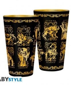 Rejoignez l’univers légendaire de Saint Seiya avec ce verre XXL représentant des Armures d’or, signé ABYstyle. Inspiré des célèbres Chevaliers d’Or, gardiens des constellations du zodiaque, ce verre rend hommage aux héros mythiques qui protègent Athéna. Chaque détail des armures est fidèlement représenté, pour que votre boisson soit “protégée” par ces puissants guerriers.