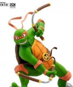 Michelangelo, l’esprit libre et blagueur de l’équipe ! Fan invétéré de skate-board, jeux vidéo et surtout de pizzas, Mikey est la tortue la plus détendue qui est possède un sens de l’humour à toute épreuve. Cependant, derrière son côté espiègle, se cache un personnage au bon cœur de même qu’un combattant agile et redoutable, usant de ses nunchakus avec dextérité.